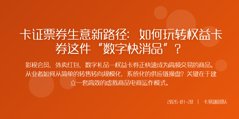 影视会员、外卖红包、数字礼品…权益卡券正快速成为高频交易的商品。从业者如何从简单的转售转向规模化、系统化的供应链操盘?关键在于建立一套高效的虚拟商品电商运作模式。