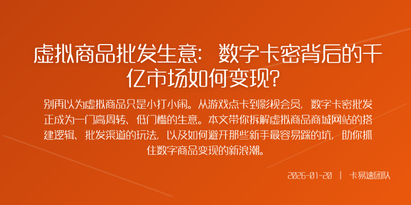 别再以为虚拟商品只是小打小闹。从游戏点卡到影视会员,数字卡密批发正成为一门高周转、低门槛的生意。本文带你拆解虚拟商品商城网站的搭建逻辑、批发渠道的玩法,以及如何避开那些新手最容易踩的坑,助你抓住数字商品变现的新浪潮。