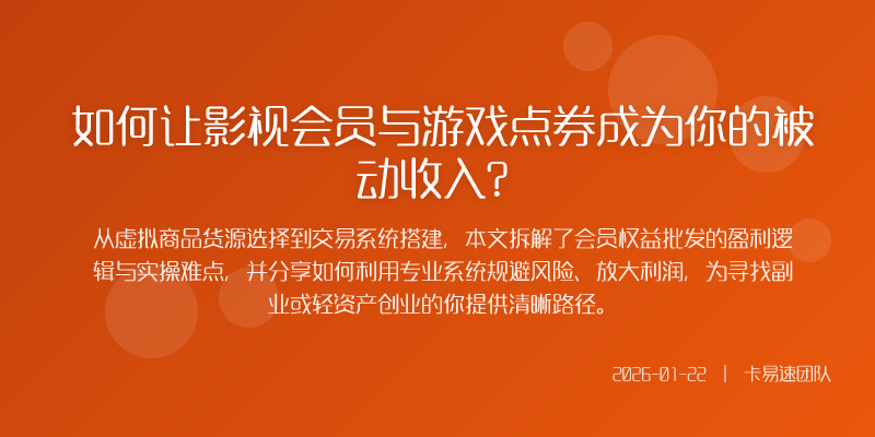 从虚拟商品货源选择到交易系统搭建,本文拆解了会员权益批发的盈利逻辑与实操难点,并分享如何利用专业系统规避风险、放大利润,为寻找副业或轻资产创业的你提供清晰路径。