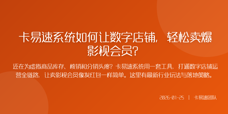 还在为虚拟商品库存、核销和分销头疼?卡易速系统用一套工具,打通数字店铺运营全链路,让卖影视会员像发红包一样简单。这里有最新行业玩法与落地策略。