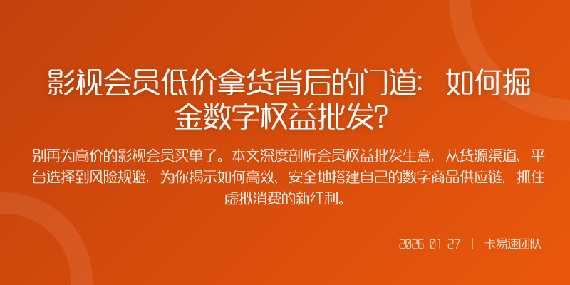 关键在于,“低价”不等于“黑产”。健康的商业模式核心在于信息差和规模效应的合理利用,而非盗号或破解。近期,一些正规的数字权益服务平台,如卡易速,正通过聚合上游授权资源,为下游商家提供稳定、可溯源的虚拟商品供应链。他们的系统能直连各大内容平台,实现自动化的发货与核销,这从根本上规避了传统手工发货易出错、货源不稳定的痛点。