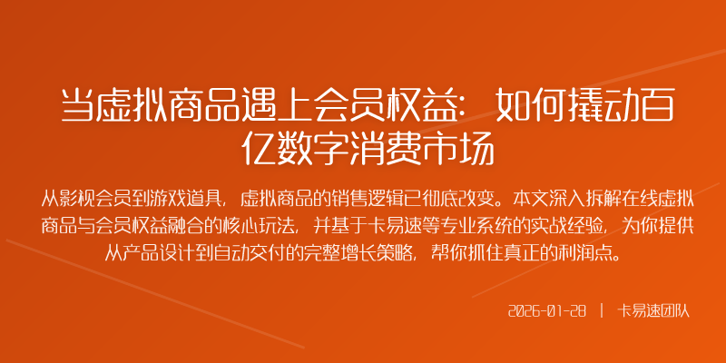 从影视会员到游戏道具,虚拟商品的销售逻辑已彻底改变。本文深入拆解在线虚拟商品与会员权益融合的核心玩法,并基于卡易速等专业系统的实战经验,为你提供从产品设计到自动交付的完整增长策略,帮你抓住真正的利润点。