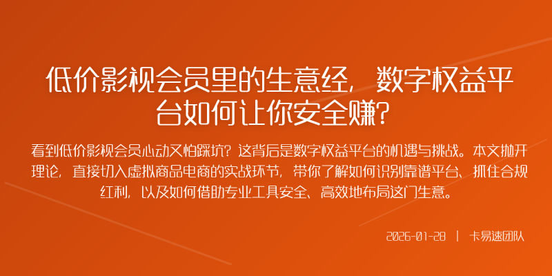 看到低价影视会员心动又怕踩坑?这背后是数字权益平台的机遇与挑战。本文抛开理论,直接切入虚拟商品电商的实战环节,带你了解如何识别靠谱平台、抓住合规红利,以及如何借助专业工具安全、高效地布局这门生意。