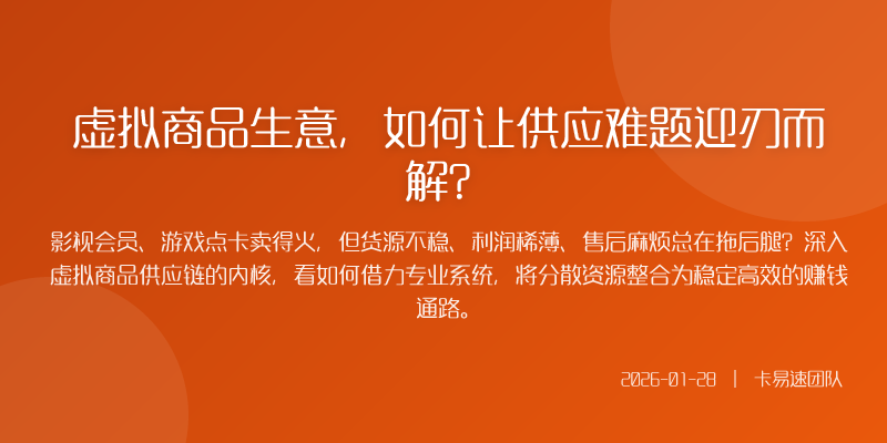 影视会员、游戏点卡卖得火,但货源不稳、利润稀薄、售后麻烦总在拖后腿?深入虚拟商品供应链的内核,看如何借力专业系统,将分散资源整合为稳定高效的赚钱通路。