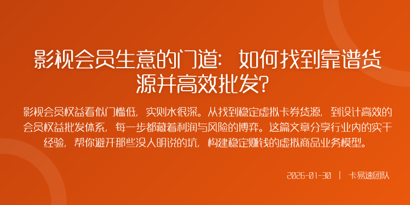 影视会员权益看似门槛低,实则水很深。从找到稳定虚拟卡券货源,到设计高效的会员权益批发体系,每一步都藏着利润与风险的博弈。这篇文章分享行业内的实干经验,帮你避开那些没人明说的坑,构建稳定赚钱的虚拟商品业务模型。