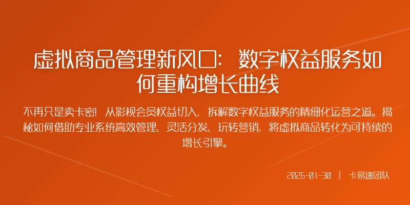不再只是卖卡密!从影视会员权益切入,拆解数字权益服务的精细化运营之道。揭秘如何借助专业系统高效管理、灵活分发、玩转营销,将虚拟商品转化为可持续的增长引擎。