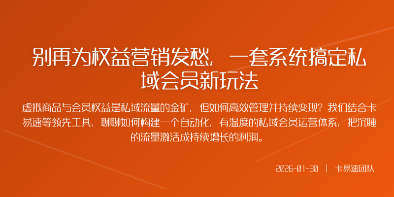 虚拟商品与会员权益是私域流量的金矿,但如何高效管理并持续变现?我们结合卡易速等领先工具,聊聊如何构建一个自动化、有温度的私域会员运营体系,把沉睡的流量激活成持续增长的利润。