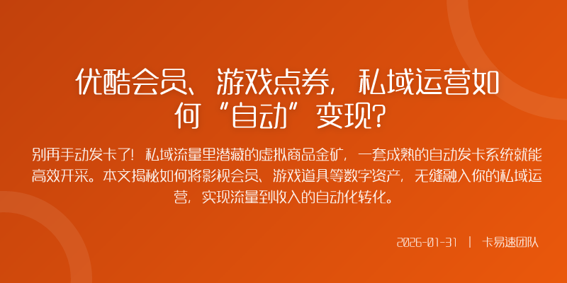 别再手动发卡了!私域流量里潜藏的虚拟商品金矿,一套成熟的自动发卡系统就能高效开采。本文揭秘如何将影视会员、游戏道具等数字资产,无缝融入你的私域运营,实现流量到收入的自动化转化。