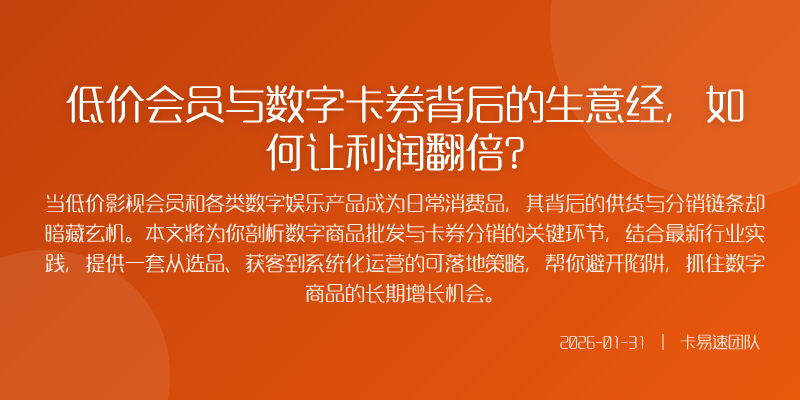 当低价影视会员和各类数字娱乐产品成为日常消费品,其背后的供货与分销链条却暗藏玄机。本文将为你剖析数字商品批发与卡券分销的关键环节,结合最新行业实践,提供一套从选品、获客到系统化运营的可落地策略,帮你避开陷阱,抓住数字商品的长期增长机会。