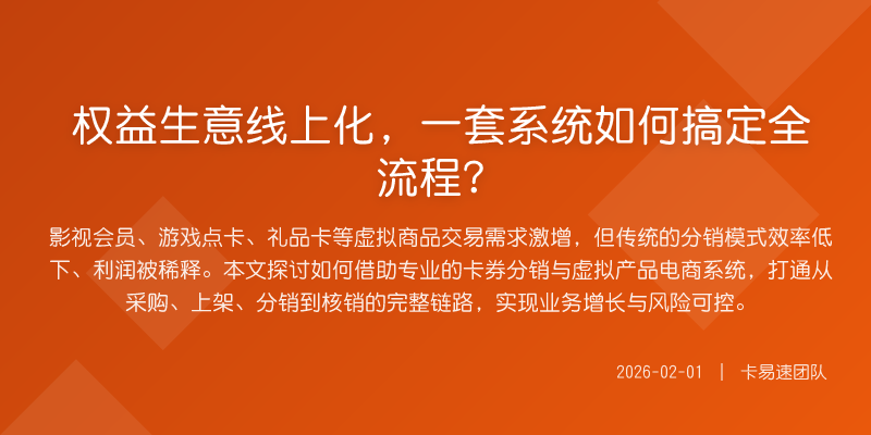 虚拟权益市场远未饱和,但竞争维度已经升级。过去靠信息差和手工拼凑的模式难以为继,未来属于那些能用技术工具将供应链、销售链和数据链高效打通的玩家。选择一套像卡易速这样深度贴合业务逻辑的系统,不仅仅是上了一套软件,更是为你的生意接入了通往规模化、规范化的快车道。当技术解决了后顾之忧,你才能更专注于寻找优质货源、开拓销售渠道、打造品牌价值,在这片充满活力的市场中建立自己的护城河。