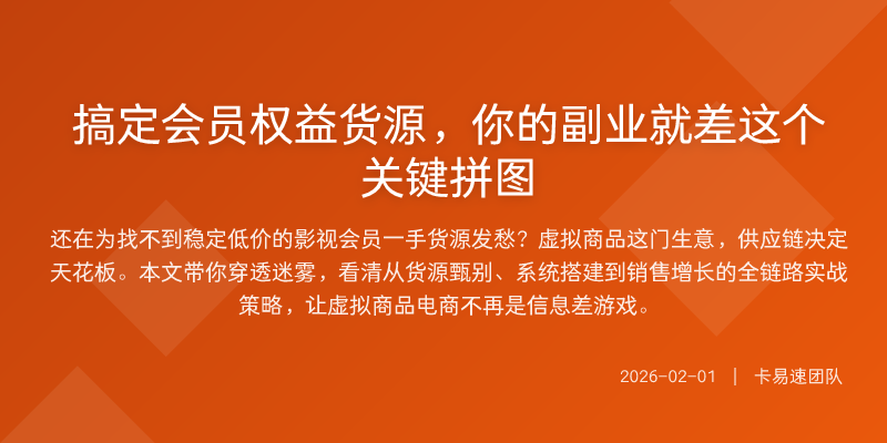 还在为找不到稳定低价的影视会员一手货源发愁?虚拟商品这门生意,供应链决定天花板。本文带你穿透迷雾,看清从货源甄别、系统搭建到销售增长的全链路实战策略,让虚拟商品电商不再是信息差游戏。