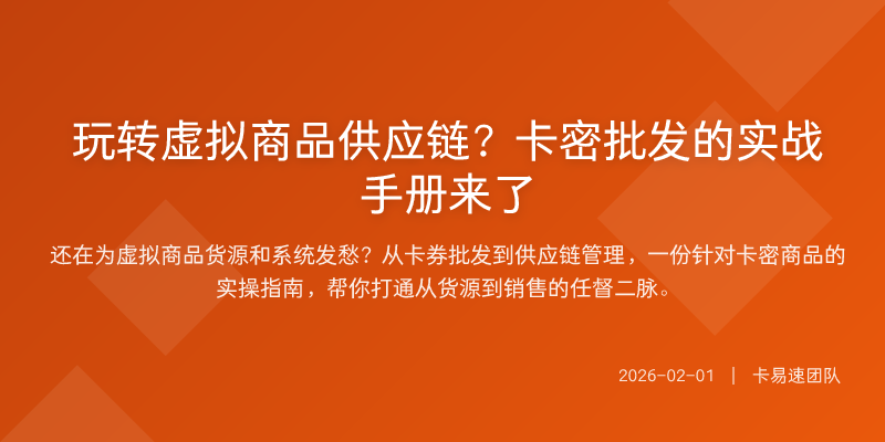还在为虚拟商品货源和系统发愁?从卡券批发到供应链管理,一份针对卡密商品的实操指南,帮你打通从货源到销售的任督二脉。