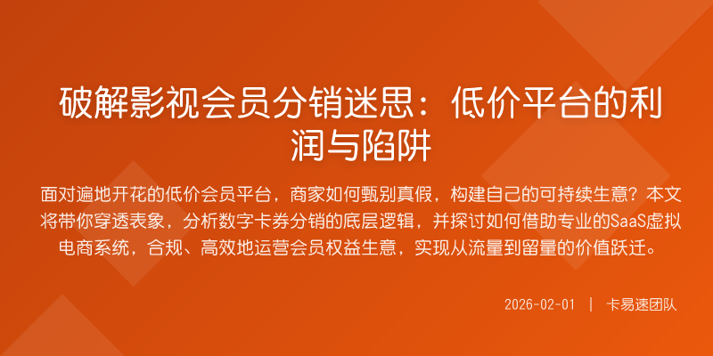 面对遍地开花的低价会员平台,商家如何甄别真假,构建自己的可持续生意?本文将带你穿透表象,分析数字卡券分销的底层逻辑,并探讨如何借助专业的SaaS虚拟电商系统,合规、高效地运营会员权益生意,实现从流量到留量的价值跃迁。