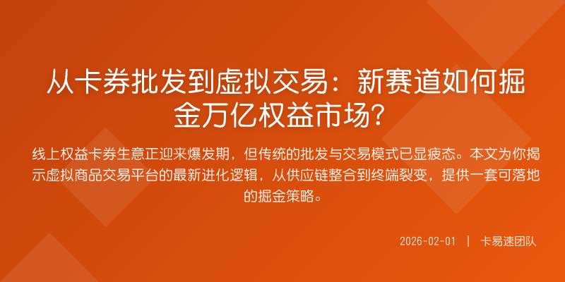 线上权益卡券生意正迎来爆发期,但传统的批发与交易模式已显疲态。本文为你揭示虚拟商品交易平台的最新进化逻辑,从供应链整合到终端裂变,提供一套可落地的掘金策略。