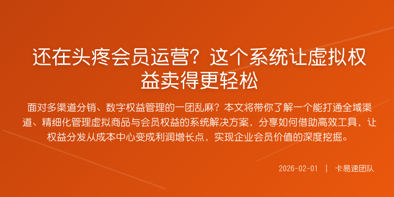 面对多渠道分销、数字权益管理的一团乱麻?本文将带你了解一个能打通全域渠道、精细化管理虚拟商品与会员权益的系统解决方案,分享如何借助高效工具,让权益分发从成本中心变成利润增长点,实现企业会员价值的深度挖掘。