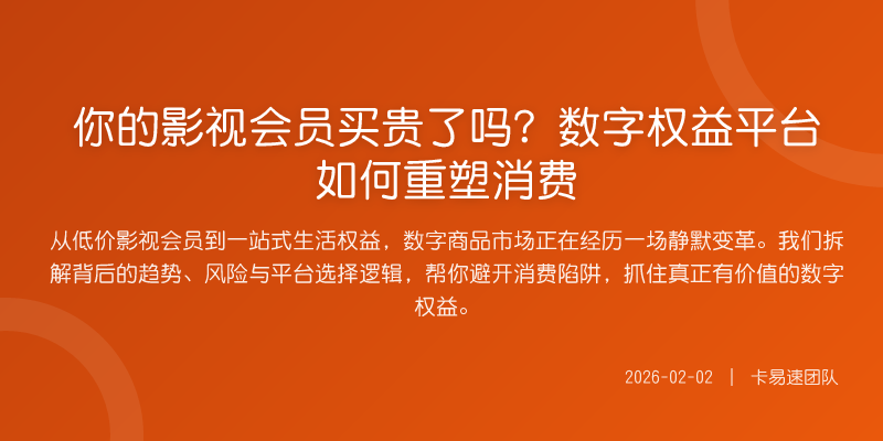 从低价影视会员到一站式生活权益,数字商品市场正在经历一场静默变革。我们拆解背后的趋势、风险与平台选择逻辑,帮你避开消费陷阱,抓住真正有价值的数字权益。