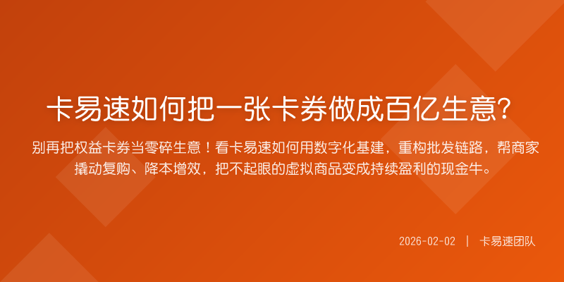 别再把权益卡券当零碎生意!看卡易速如何用数字化基建,重构批发链路,帮商家撬动复购、降本增效,把不起眼的虚拟商品变成持续盈利的现金牛。