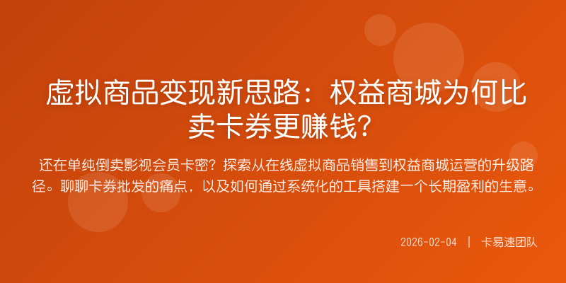 还在单纯倒卖影视会员卡密?探索从在线虚拟商品销售到权益商城运营的升级路径。聊聊卡券批发的痛点,以及如何通过系统化的工具搭建一个长期盈利的生意。