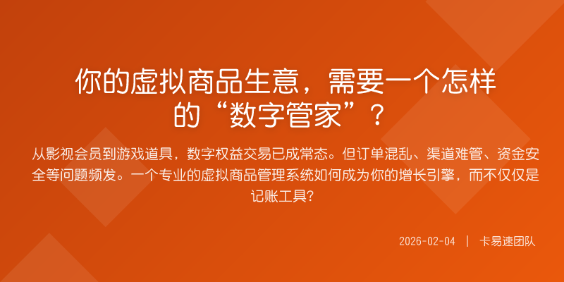 从影视会员到游戏道具,数字权益交易已成常态。但订单混乱、渠道难管、资金安全等问题频发。一个专业的虚拟商品管理系统如何成为你的增长引擎,而不仅仅是记账工具?