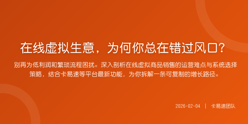 别再为低利润和繁琐流程困扰。深入剖析在线虚拟商品销售的运营难点与系统选择策略,结合卡易速等平台最新功能,为你拆解一条可复制的增长路径。