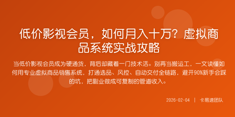 当低价影视会员成为硬通货,背后却藏着一门技术活。别再当搬运工,一文读懂如何用专业虚拟商品销售系统,打通选品、风控、自动交付全链路,避开90%新手会踩的坑,把副业做成可复制的管道收入。
