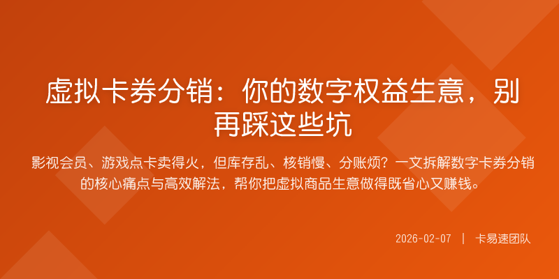 影视会员、游戏点卡卖得火,但库存乱、核销慢、分账烦?一文拆解数字卡券分销的核心痛点与高效解法,帮你把虚拟商品生意做得既省心又赚钱。