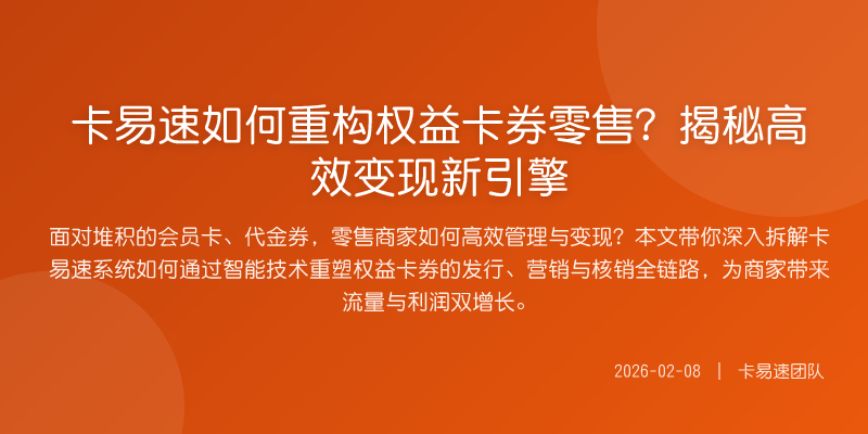面对堆积的会员卡、代金券,零售商家如何高效管理与变现?本文带你深入拆解卡易速系统如何通过智能技术重塑权益卡券的发行、营销与核销全链路,为商家带来流量与利润双增长。