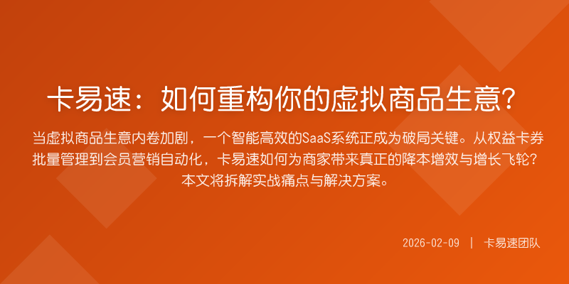 当虚拟商品生意内卷加剧,一个智能高效的SaaS系统正成为破局关键。从权益卡券批量管理到会员营销自动化,卡易速如何为商家带来真正的降本增效与增长飞轮?本文将拆解实战痛点与解决方案。
