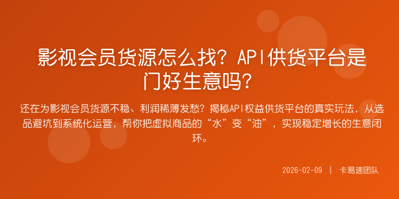还在为影视会员货源不稳、利润稀薄发愁?揭秘API权益供货平台的真实玩法,从选品避坑到系统化运营,帮你把虚拟商品的“水”变“油”,实现稳定增长的生意闭环。