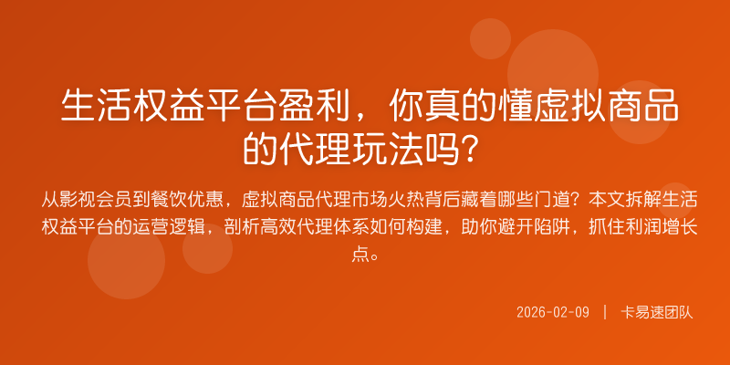 从影视会员到餐饮优惠,虚拟商品代理市场火热背后藏着哪些门道?本文拆解生活权益平台的运营逻辑,剖析高效代理体系如何构建,助你避开陷阱,抓住利润增长点。
