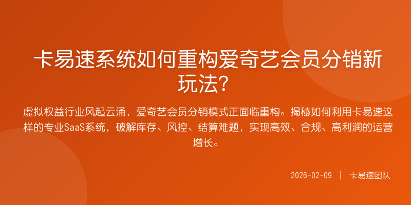 虚拟权益行业风起云涌,爱奇艺会员分销模式正面临重构。揭秘如何利用卡易速这样的专业SaaS系统,破解库存、风控、结算难题,实现高效、合规、高利润的运营增长。