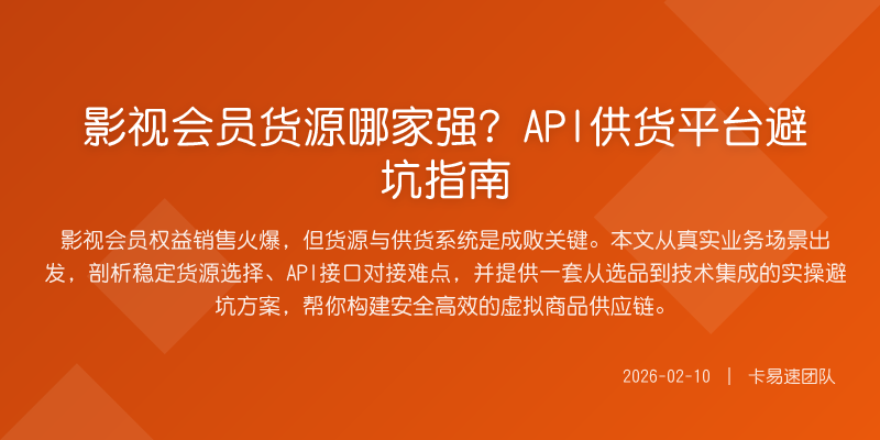 影视会员权益销售火爆,但货源与供货系统是成败关键。本文从真实业务场景出发,剖析稳定货源选择、API接口对接难点,并提供一套从选品到技术集成的实操避坑方案,帮你构建安全高效的虚拟商品供应链。