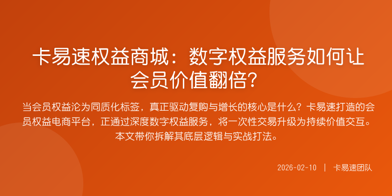 当会员权益沦为同质化标签,真正驱动复购与增长的核心是什么?卡易速打造的会员权益电商平台,正通过深度数字权益服务,将一次性交易升级为持续价值交互。本文带你拆解其底层逻辑与实战打法。