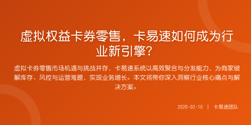 虚拟卡券零售市场机遇与挑战并存,卡易速系统以高效聚合与分发能力,为商家破解库存、风控与运营难题,实现业务增长。本文将带你深入洞察行业核心痛点与解决方案。