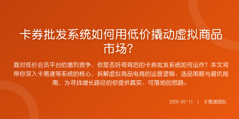 面对低价会员平台的激烈竞争,你是否好奇背后的卡券批发系统如何运作?本文将带你深入卡易速等系统的核心,拆解虚拟商品电商的运营逻辑、选品策略与避坑指南,为寻找增长路径的你提供真实、可落地的思路。