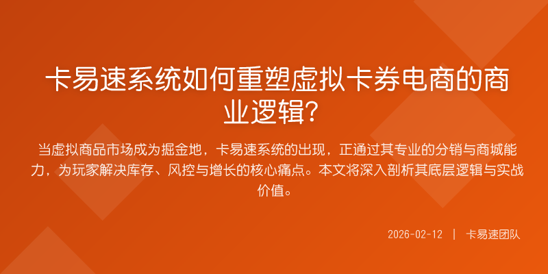 当虚拟商品市场成为掘金地,卡易速系统的出现,正通过其专业的分销与商城能力,为玩家解决库存、风控与增长的核心痛点。本文将深入剖析其底层逻辑与实战价值。