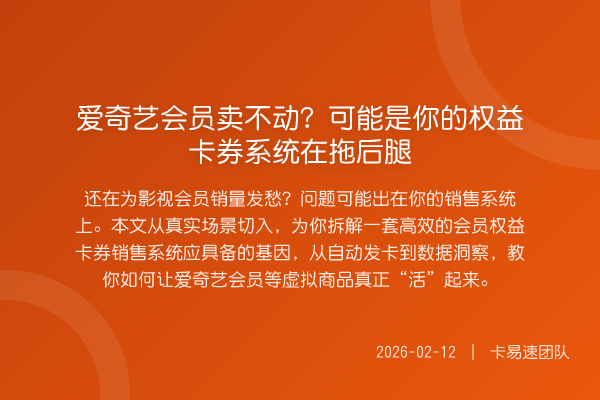 还在为影视会员销量发愁?问题可能出在你的销售系统上。本文从真实场景切入,为你拆解一套高效的会员权益卡券销售系统应具备的基因,从自动发卡到数据洞察,教你如何让爱奇艺会员等虚拟商品真正“活”起来。