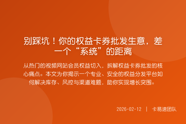 从热门的视频网站会员权益切入,拆解权益卡券批发的核心痛点。本文为你揭示一个专业、安全的权益分发平台如何解决库存、风控与渠道难题,助你实现增长突围。