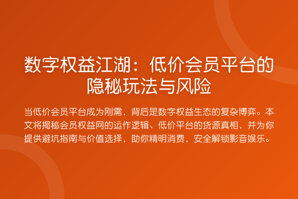 当低价会员平台成为刚需,背后是数字权益生态的复杂博弈。本文将揭秘会员权益网的运作逻辑、低价平台的货源真相,并为你提供避坑指南与价值选择,助你精明消费,安全解锁影音娱乐。