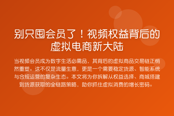 当视频会员成为数字生活必需品,其背后的虚拟商品交易链正悄然重塑。这不仅是流量生意,更是一个需要稳定货源、智能系统与合规运营的复杂生态。本文将为你拆解从权益选择、商城搭建到货源获取的全链路策略,助你抓住虚拟消费的增长密码。