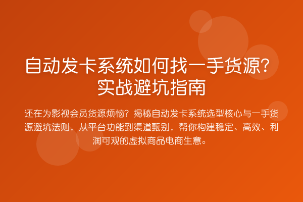 还在为影视会员货源烦恼?揭秘自动发卡系统选型核心与一手货源避坑法则,从平台功能到渠道甄别,帮你构建稳定、高效、利润可观的虚拟商品电商生意。