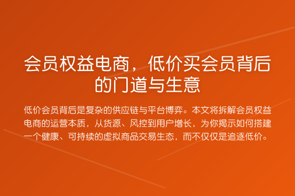 低价会员背后是复杂的供应链与平台博弈。本文将拆解会员权益电商的运营本质,从货源、风控到用户增长,为你揭示如何搭建一个健康、可持续的虚拟商品交易生态,而不仅仅是追逐低价。