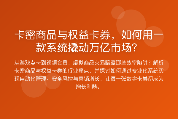 卡密商品与权益卡券,如何用一款系统撬动万亿市场?