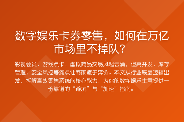 从影视会员、音乐流媒体,到游戏点卡、虚拟道具,再到知识付费、生活服务权益,数字娱乐产品与权益卡券已经渗透到生活的每一个角落,构建起一个万亿级别的庞大市场。然而,市场越火热,水面下的暗流就越汹涌。传统零售的经验在这里几乎失灵,高并发流量冲击、虚拟库存管理、多渠道分发对账、复杂的二次销售与核销逻辑,还有无处不在的黑灰产威胁……每一环都可能成为压垮生意的最后一根稻草。