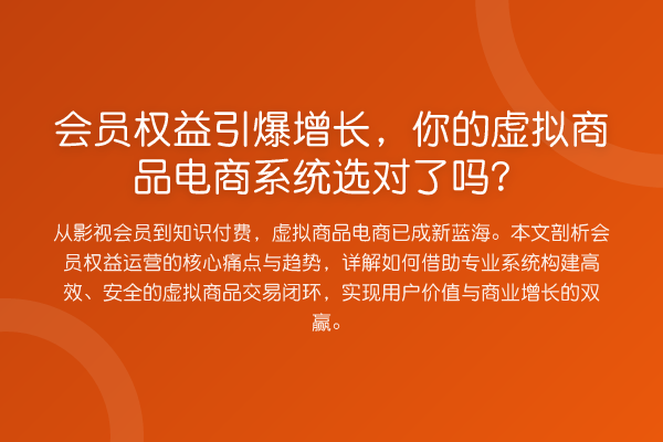 从影视会员到知识付费,虚拟商品电商已成新蓝海。本文剖析会员权益运营的核心痛点与趋势,详解如何借助专业系统构建高效、安全的虚拟商品交易闭环,实现用户价值与商业增长的双赢。