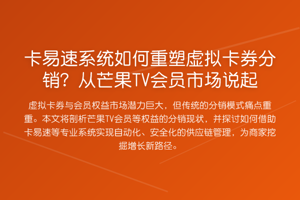 卡易速系统如何重塑虚拟卡券分销?从芒果TV会员市场说起