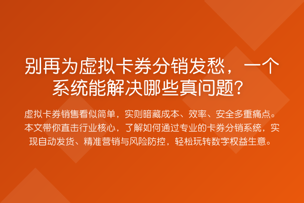 虚拟卡券销售看似简单,实则暗藏成本、效率、安全多重痛点。本文带你直击行业核心,了解如何通过专业的卡券分销系统,实现自动发货、精准营销与风险防控,轻松玩转数字权益生意。