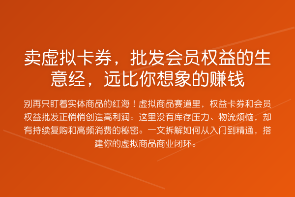 别再只盯着实体商品的红海!虚拟商品赛道里,权益卡券和会员权益批发正悄悄创造高利润。这里没有库存压力、物流烦恼,却有持续复购和高频消费的秘密。一文拆解如何从入门到精通,搭建你的虚拟商品商业闭环。