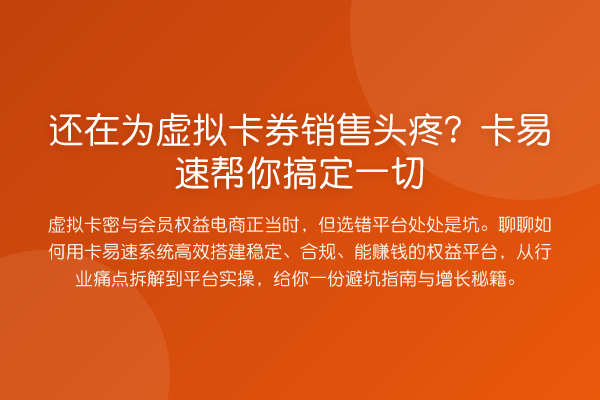 虚拟卡密与会员权益电商正当时,但选错平台处处是坑。聊聊如何用卡易速系统高效搭建稳定、合规、能赚钱的权益平台,从行业痛点拆解到平台实操,给你一份避坑指南与增长秘籍。