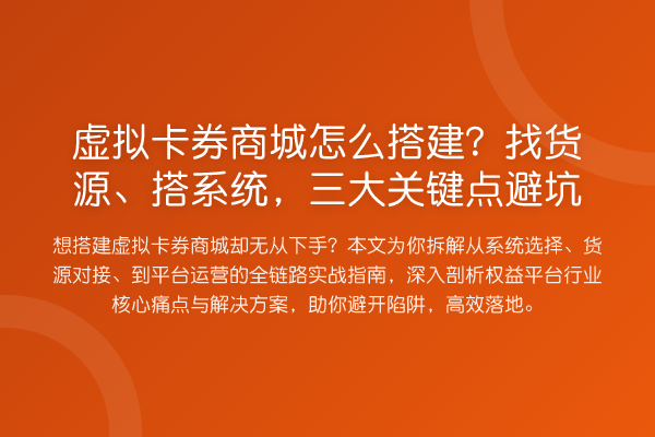 想搭建虚拟卡券商城却无从下手?本文为你拆解从系统选择、货源对接、到平台运营的全链路实战指南,深入剖析权益平台行业核心痛点与解决方案,助你避开陷阱,高效落地。